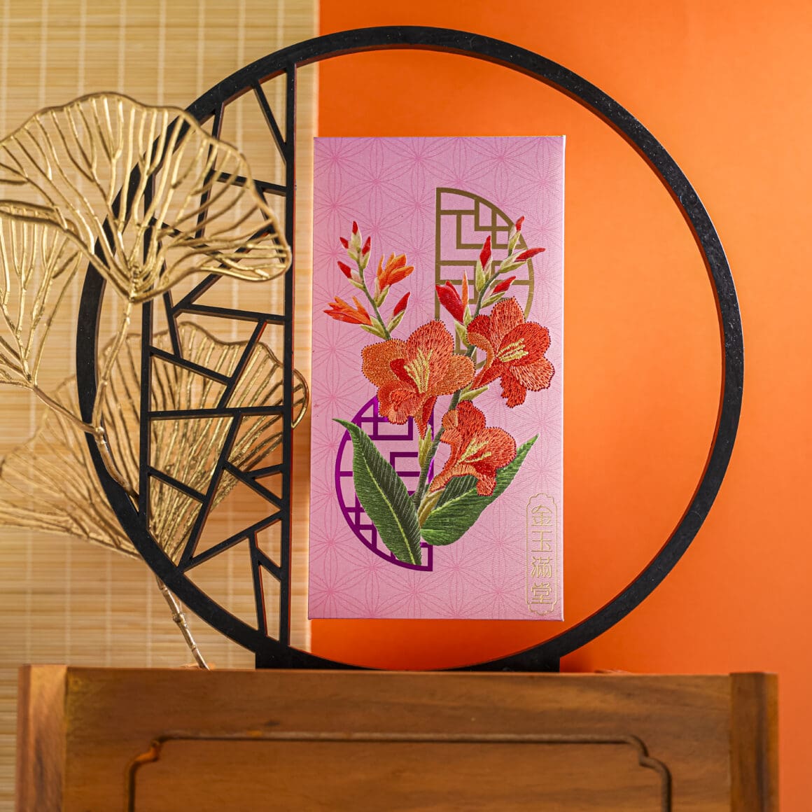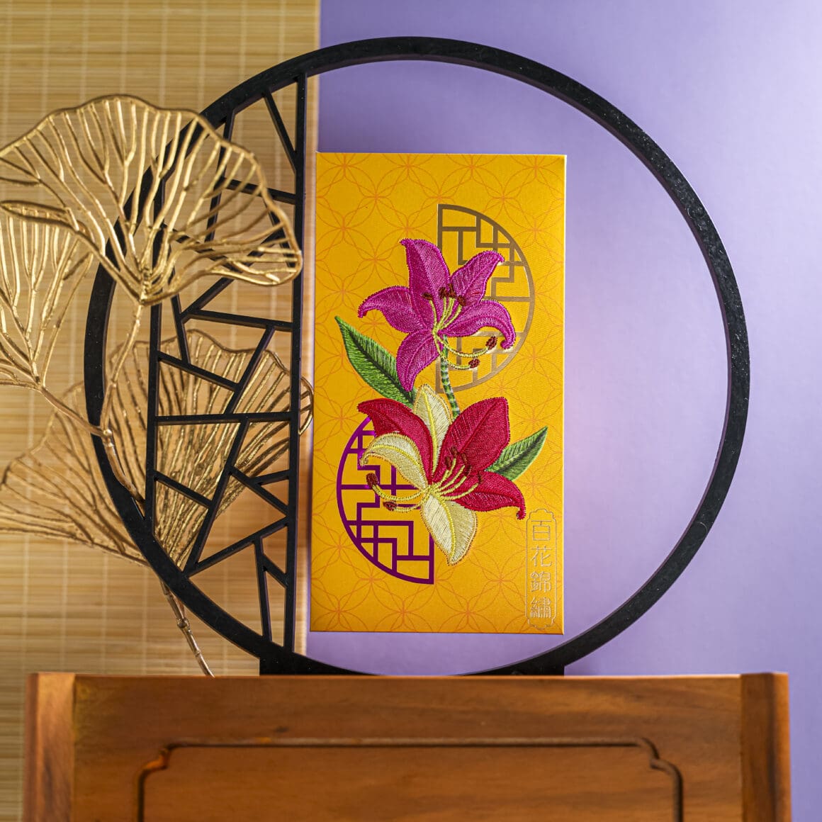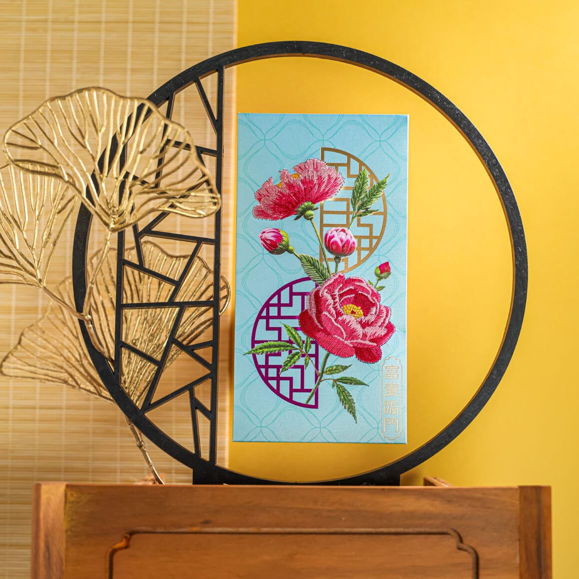 該系列以經典新春花卉為設計靈感,結合傳統刺繡工藝,製作出四款寓意吉祥的利是封。