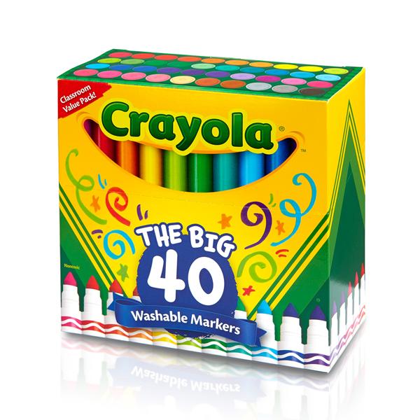 Crayola 繪兒樂 40 色超強可水洗粗身水彩筆專為兒童設計,採用加粗加固錐形筆頭,色彩鮮豔、通過 AP / CE 安全認證;強效可水洗配方讓小朋友盡情揮灑,家長毋須擔心清洗問題。