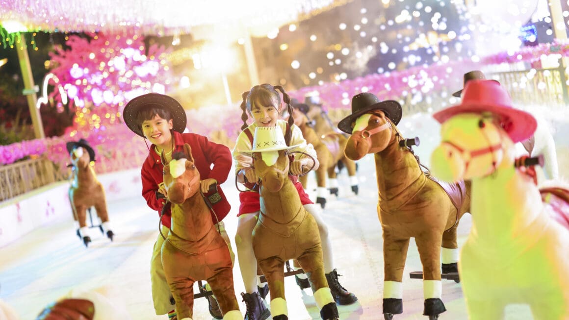 荃灣廣場以馬年為主題,打造面積達 1,500 呎的泡泡世界,包括必玩的「夢幻泡泡童趣騎馬仔」,讓小朋友化身小騎士,騎乘造型可愛的小馬仔,穿梭七彩泡泡展開趣味冒險;「甜蜜光影泡泡溜冰場」升級為打卡熱點,配合變化燈效,營造童話般滑冰樂趣;還有長達 20 米的「福願光影大道」,匯聚多款主題光影配合彩色水波效果,營造如夢似幻星河步道。園區內設有 2 大祈願打卡熱點,包括全長 20 米的「花好月圓打卡牆」,以花海巨畫配合閃爍鏡面及七彩燈謎元素,結合視覺美感與互動趣味;以及高 3.5 米的「『心心滿滿』祈願桃花樹」,象徵愛與希望,結合花見小精靈鏡面裝置與祝福語,寓意吸引好運。整個園區營造溫馨喜慶氣氛,適合親子同遊與拍照留念。