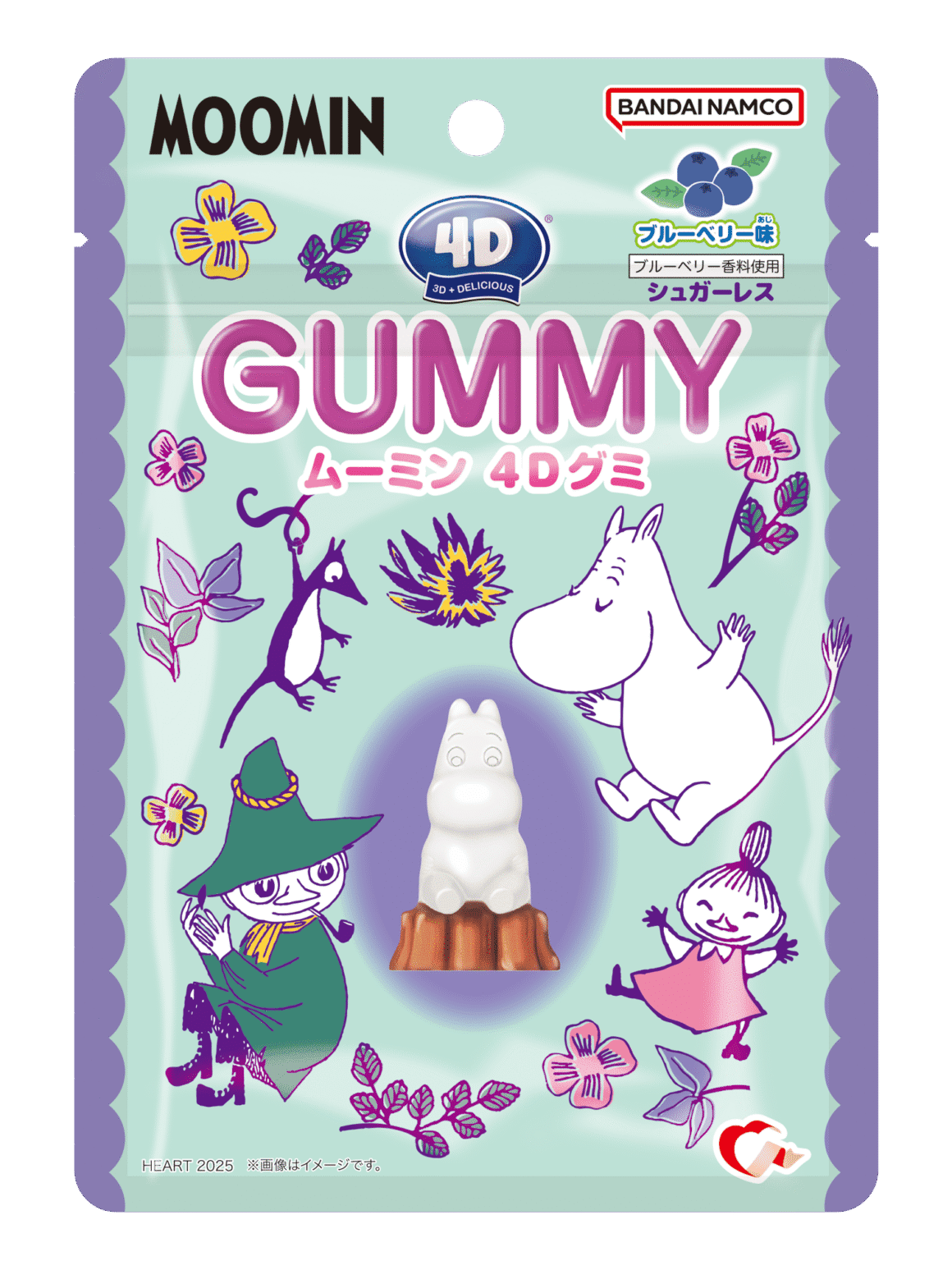 萬代 4D 軟糖姆明以藍莓口味呈現立體姆明造型,包裝設計溫馨可愛,售價為港幣 $18.5 / 件。卡樂 B 脆之豆推出海苔紫菜味青豆條,香脆配濃厚海苔香氣。