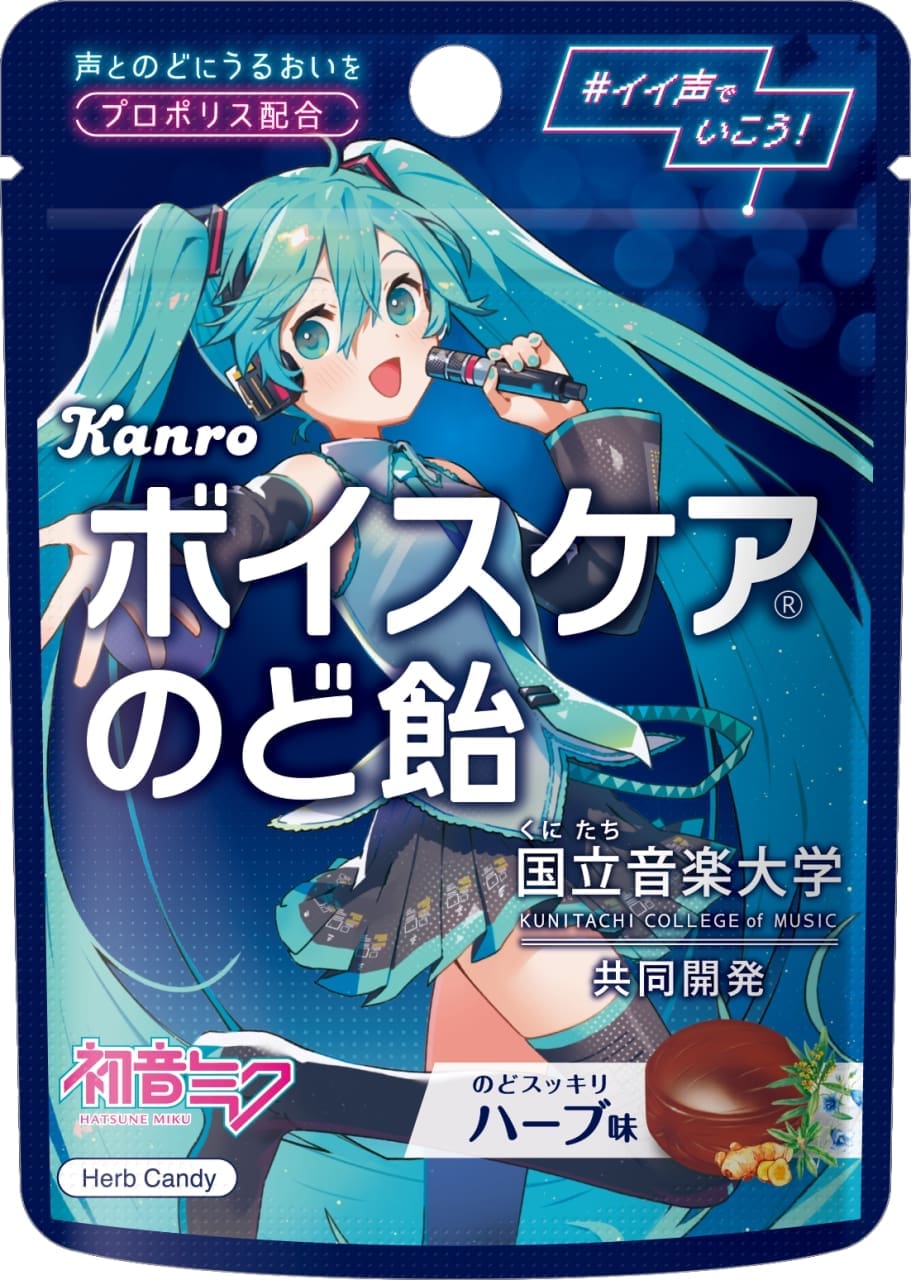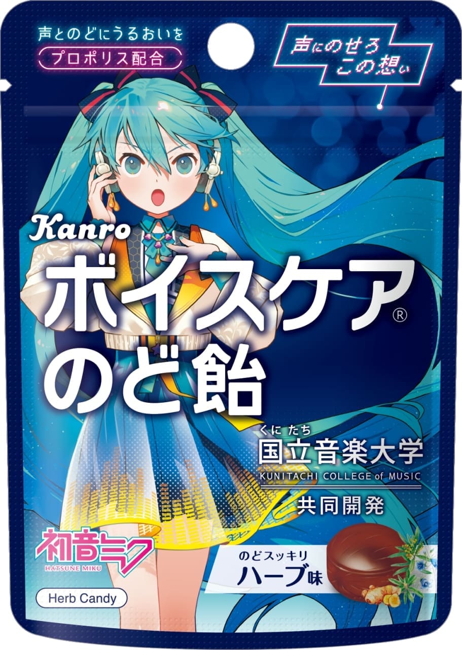 甘樂聯乘人氣虛擬歌手初音未來,推出聲音護理潤喉糖特別版,由人氣插畫家前屋進繪製 4 款包裝,專為重視聲音及喉嚨人士設計。
