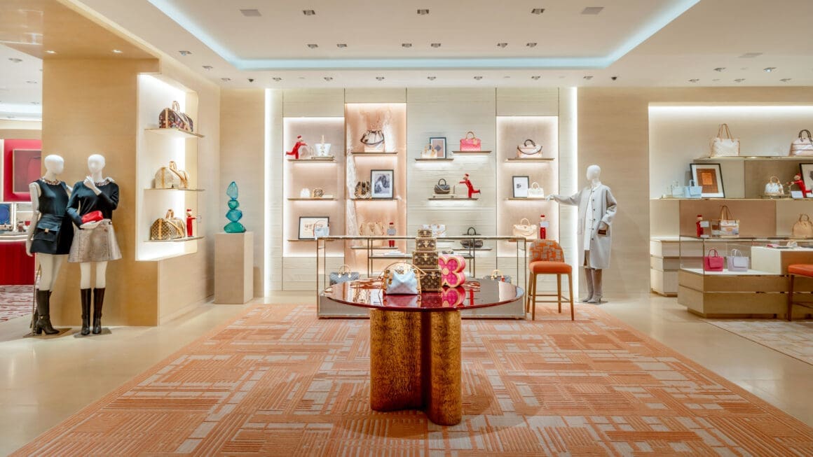 Louis Vuitton 利園專門店擴建後面積達 1,478 平方米,精心揉合男女士專區,匯聚多個品牌精選單品,包括皮具、時裝、鞋履、配飾、腕錶、珠寶、香水及彩妝。全新女士貴賓室「 The Theatre 」靈感源自利舞臺 1920 至 1990 年代的黃金時期,透過現代設計重塑昔日氣派,精緻天花裝飾令顧客如置身豪華劇院。男士貴賓室則致敬利園酒店著名飲勝吧,糅合東西方文化元素與現代優雅風格,營造懷舊且親切的氛圍,並融入藝術品及精選家具,讓顧客沉浸於香港夜生活的黃金年代氣息。此空間不單展示經典設計,更體現極致服務,確保每位顧客盡享尊貴購物體驗。