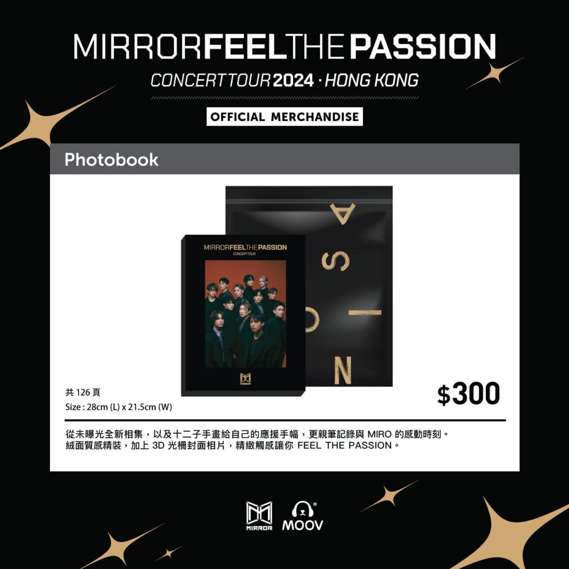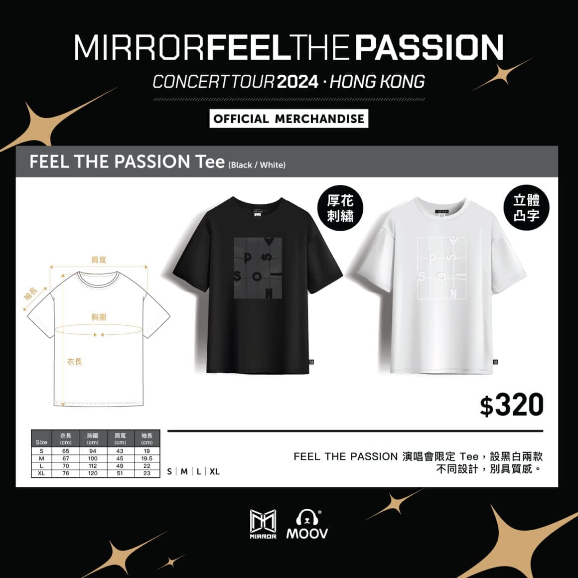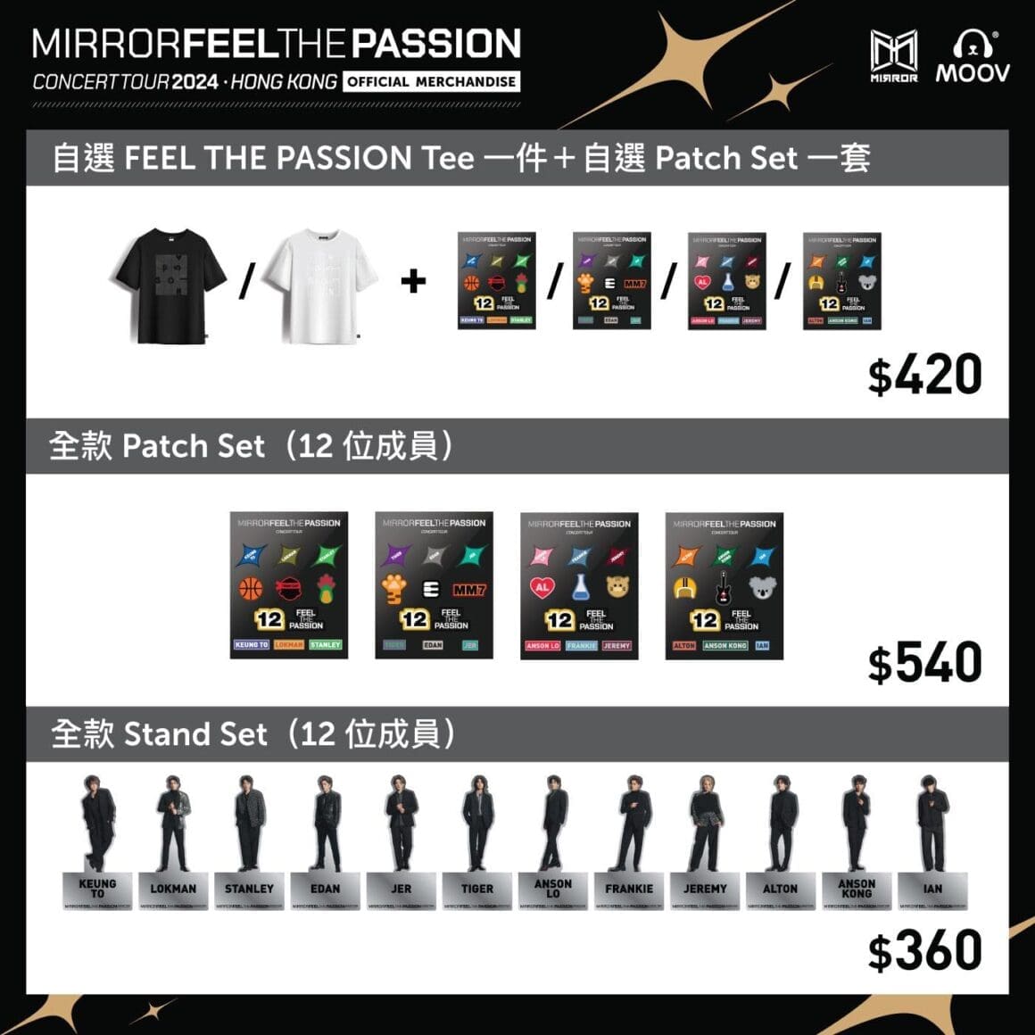 16 場《 MIRROR “FEEL THE PASSION CONCERT” 巡迴演唱會》香港站將於 1 月 15 – 17 日、 1 月 19 – 22 日、 1 月 24 – 27 日、 1 月 29 – 31 及 2 月 2 – 3 日於亞洲博覽館 AsiaWorld – Arena 舉行。演唱會將於晚上 8 點 15 分開始,所有門票經已售罄,沒有門票的觀眾可透過 MakeALive 觀看直播。直播日期為 1 月 21 日晚上 8 點 15 分及 2 月 3 日晚上 8 點 15 分,即首場及尾場,網上直播門票為每場 $420 , MIRO 粉絲可享優惠價 $380 。觀眾可連接 MIRROR Offical Light Stick 與演唱會同步。(網上直播門票網站)。