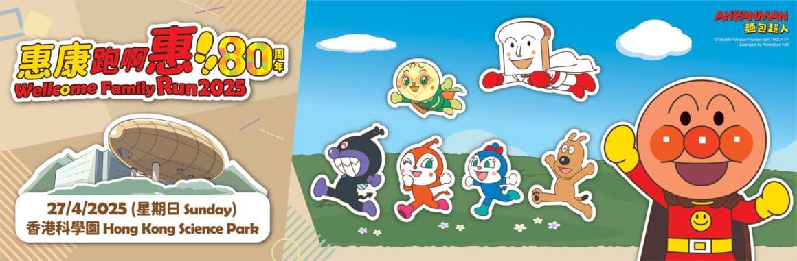 適逢惠康 80 週年,今年品牌特別邀請日本超人氣角色麵包超人一同參與年度跑步盛事 「惠康跑啊惠 2025!」,並將於 4 月 27 日於香港科學園 大舉行!賽事設有個人組、親子組及狗狗障礙挑戰組,更有 6 米高麵包超人充氣彈床、粉絲見面會及最受歡迎裝扮大獎,讓大人、小朋友、甚至毛孩們都能全情投入運動及歡樂派對!所有參賽者更可獲得 限定選手紀念包,跑步高手、新手、全家總動員都能 享受無限樂趣!