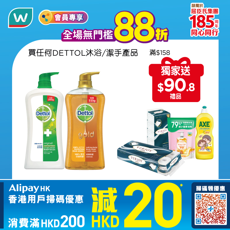 HAAGEN-DAZS 各款家庭裝雪糕 420-473 毫升:原優惠價 $50,88 折後折實 $44(另可加 $35.2 換購灣仔碼頭家庭裝水餃 840 克,需滿 $168 方享 88 折)惠康同期設有贈品優惠:購買 2 件滴露沐浴露孖裝,即送總值港幣 $191 贈品,包括得寶 10 卷裝衛生紙、維達抽取式面紙、出前一丁 5 包裝、維他冷泡茶 6 包裝、鈣思寶 6 包裝,以及港幣 $50 票尾現金券。