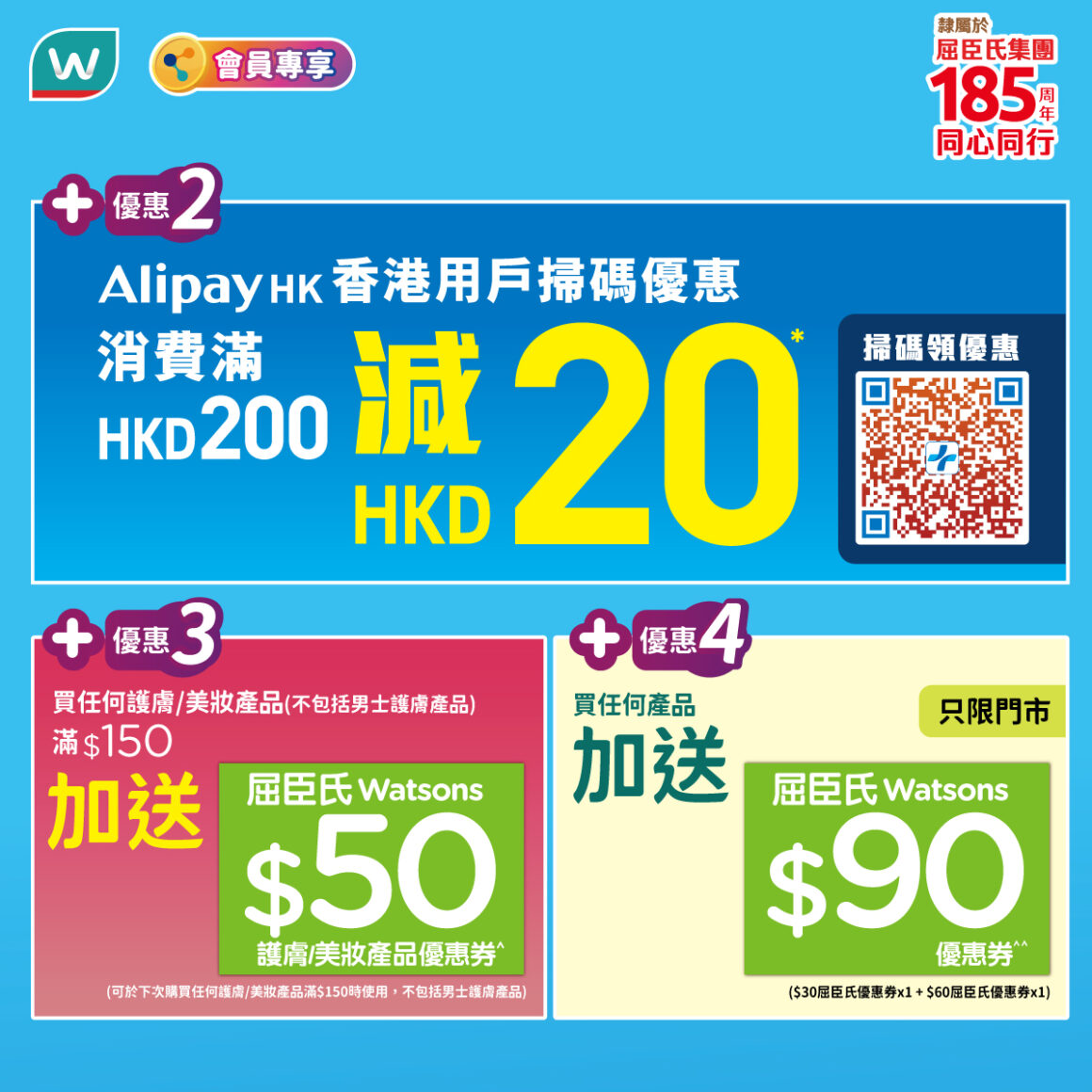 惠康於 4 月 18 日推出門市一日限定優惠,購物滿港幣 $168 即享 88 折,折扣不設上限。同日購買紅酒或白餐酒(750 毫升或以上,原箱及禮盒裝除外)滿港幣 $300,可額外享有 85 折。(詳情)
