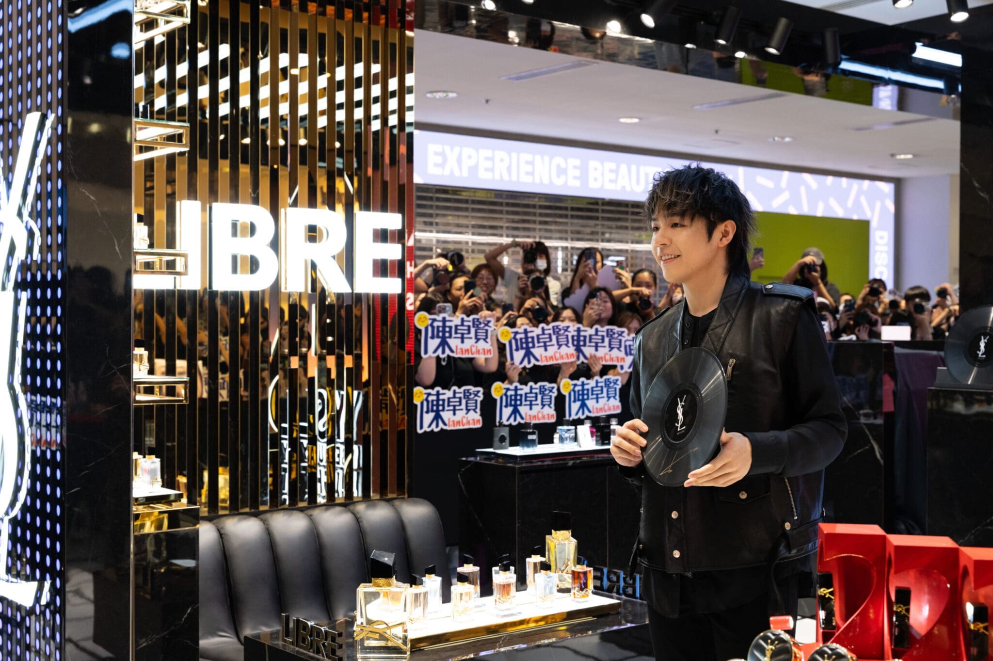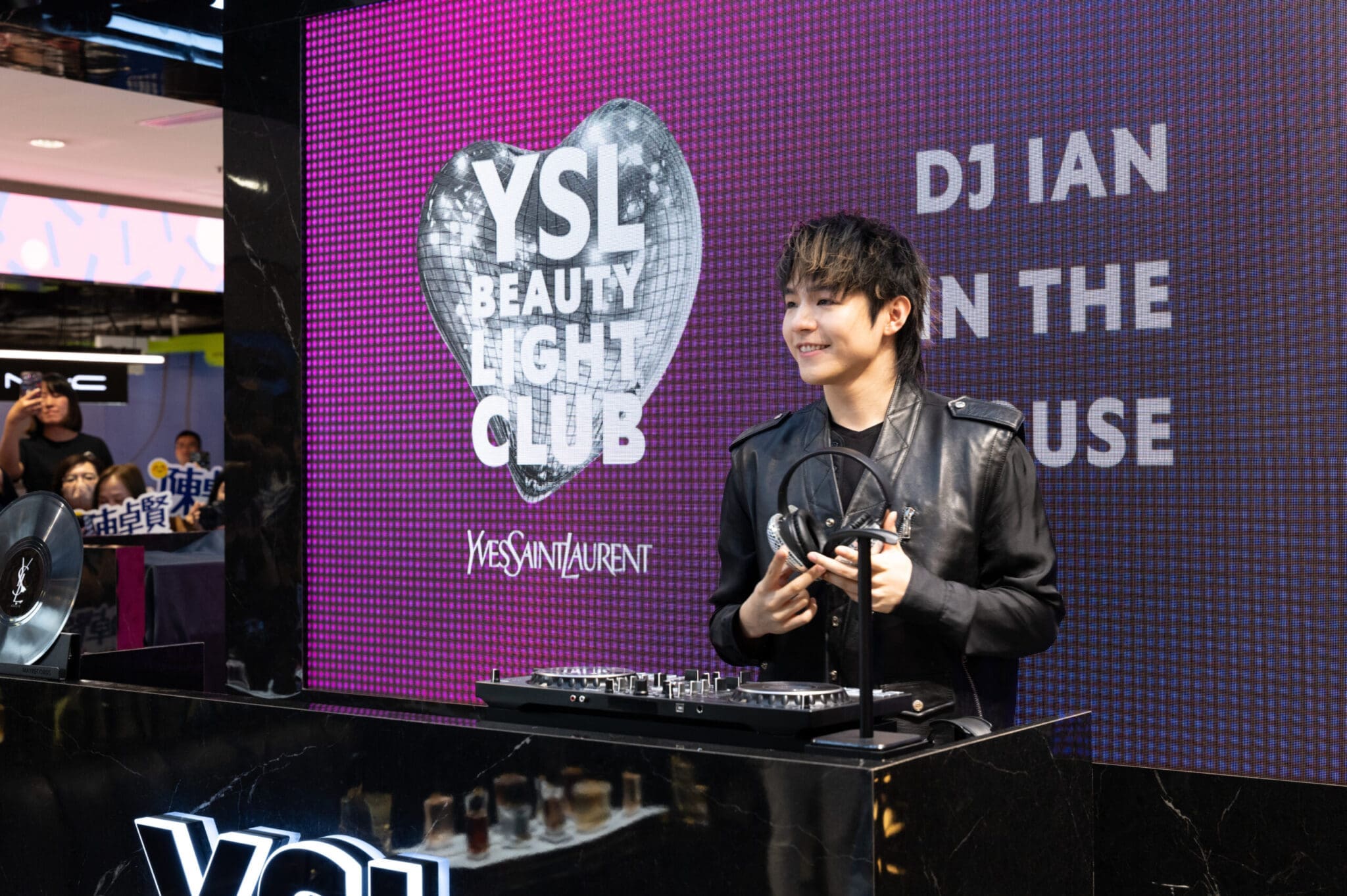 人氣男團 MIRROR 成員陳卓賢(Ian)再度受邀出席 YSL BEAUTÉ 的年度盛事,以型格造型登場的他瞬間點燃全場氣氛,粉絲們尖叫聲此起彼伏,現場熱情高漲。 Ian 在活動中更大玩「 PLAY THE STAGE 」互動遊戲,隨著電子音樂的節奏搖擺起舞,與眾多 HELLOSSS 一同感受音樂派對的魅力。他表示:「 YSL BEAUTÉ 一直在突破彩妝的界限,今次將音樂與彩妝結合,我非常高興能夠參與這場充滿活力的派對。」